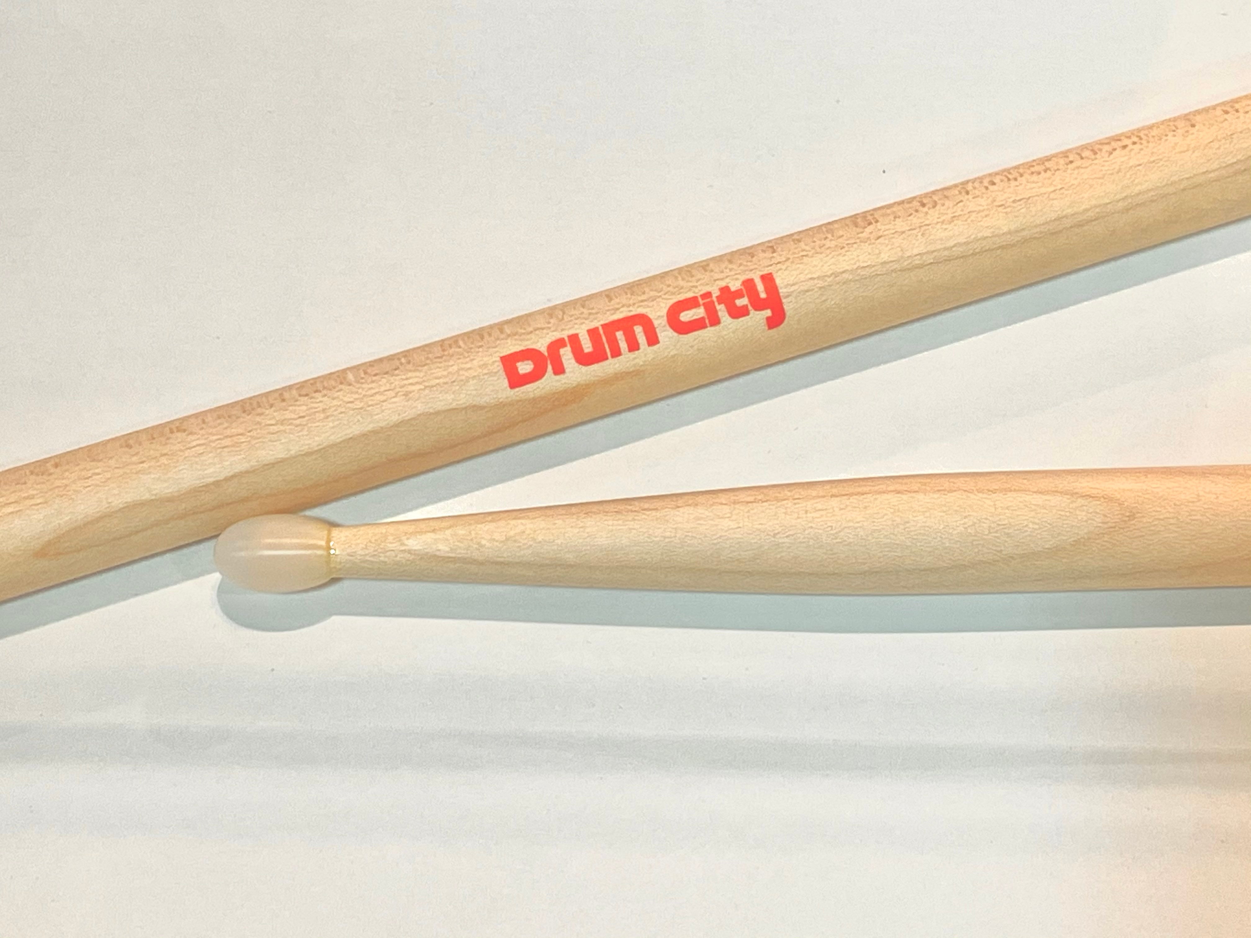 ドラムシティオリジナルスティックのラインナップとして最新モデルであり、初となるナイロン・チップのスティック。太さ、長さは標準的なサイジングを採用し、木材はメイプルとヒッコリーの2種類をご用意。同一バランスで、素材による感覚の違いを存分に味わっていただけます。