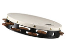 単板の枠にジャーマン・シルバー&フォスファー・ブロンズのシングルを交互に2連(ダブル)組み合わせ装備した、グローバー中でも異色のタンバリン。
