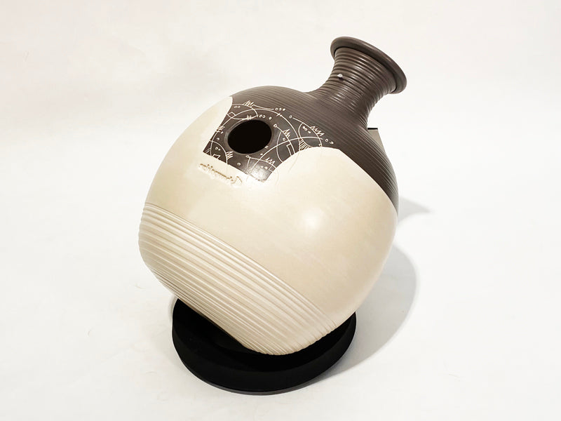 陶製のつぼで、楽器中央の穴をふさいだり、ボディを叩いて音を出します。