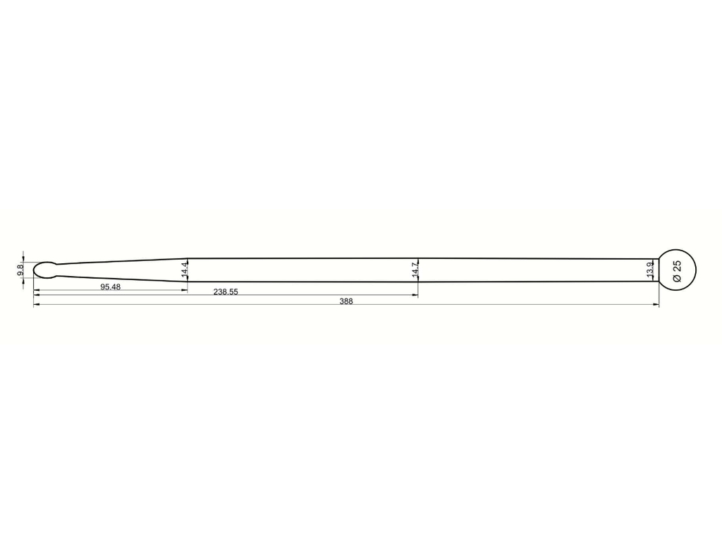 ● The volume, hardness and weight as a drum stick are similar to the classic series 5B.