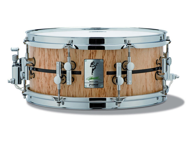 [In the beginning of 2010, sonar and Benny began to work on the production of extremely special snare drums.Benny, like himself, is a signature model, like his own, musical, musical, exactly like himself.Benny likes beach wood.The transparent, warm-hearted and extensive sound of a wide range of tuning and ranges.A beautiful Scandinavian Birch, which is supported over time, was adopted as an exterior of the cosmetic plate.This alone, however, is not a special specification for Benny.Personalized Benny Gleb badge is a deformated Benny illustration with a resin design ring being made into the shell.